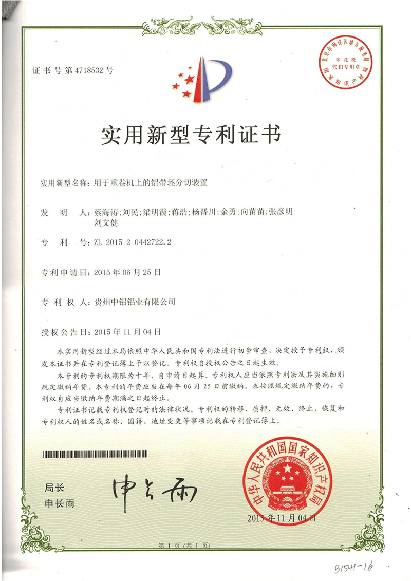 實用新型專利證書